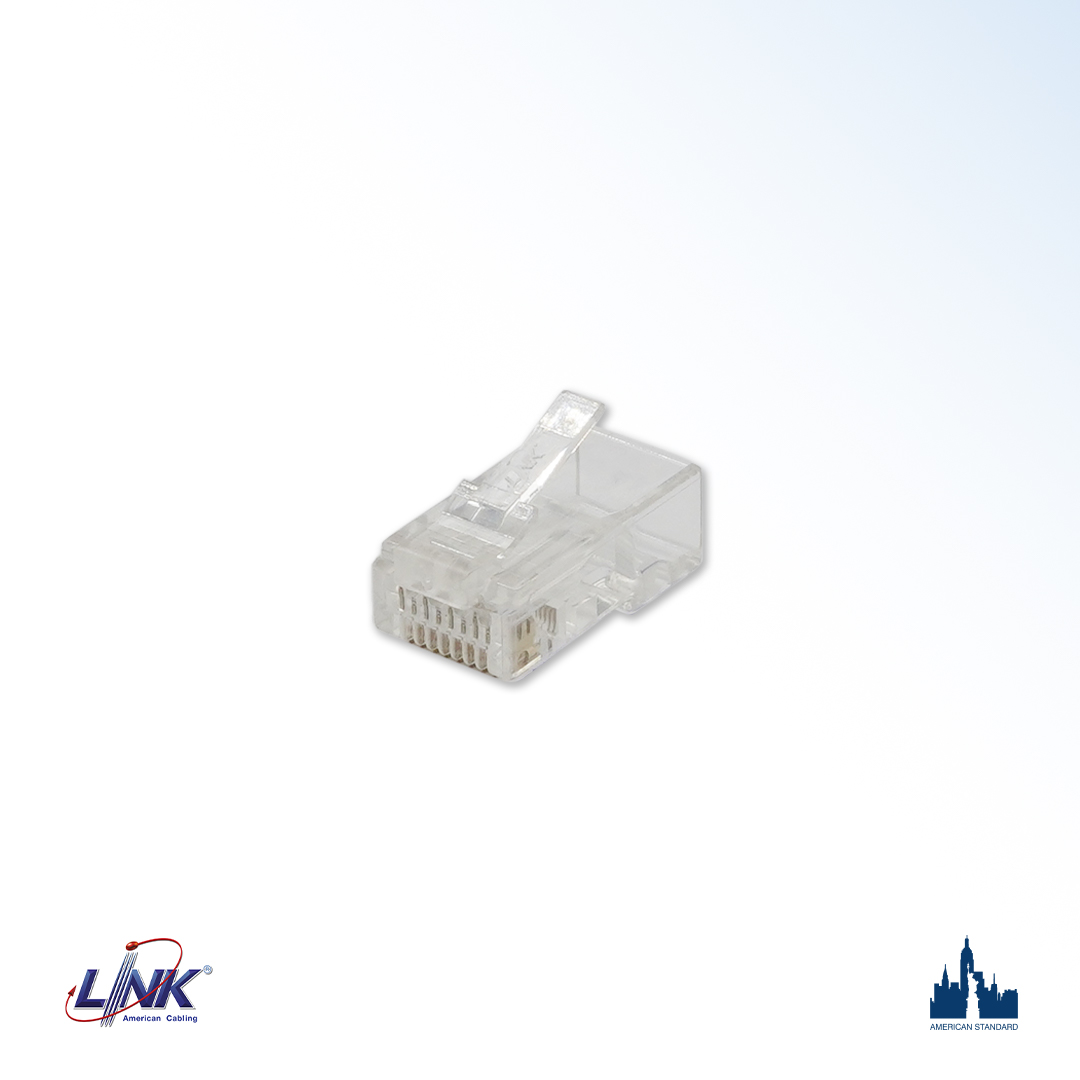 The LINK Category 6 NEW RJ45 Modular Plug 2 Layer complies with ISO/IEC 11801 Class E and ANSI/TIA-568.2-E standards for Category 6 performance. LINK offers these plugs in standard configurations, making them suitable for terminating modular cords in patching or workplace applications. The unique termination process simplifies installation, and the single-part design enhances performance.