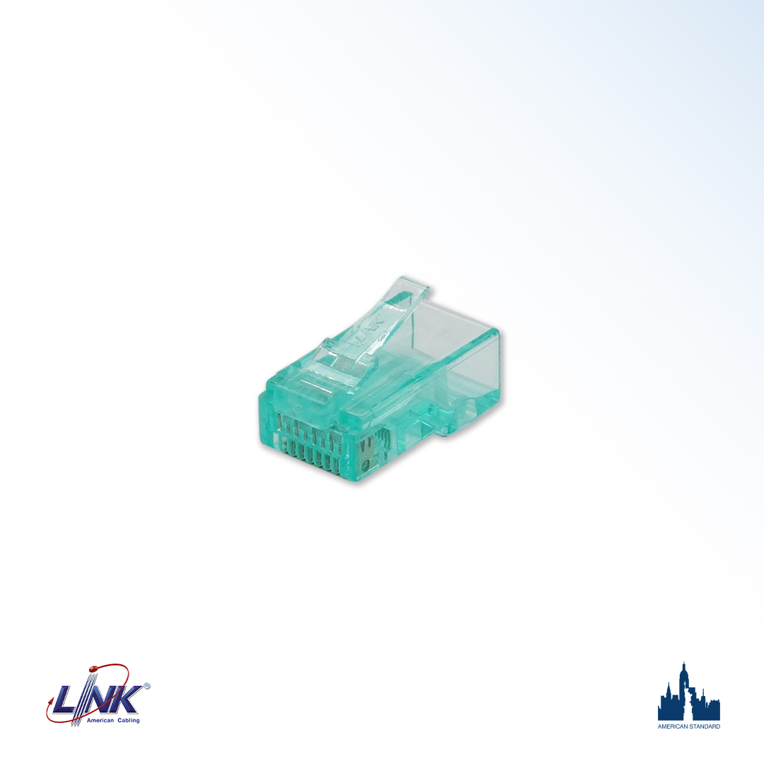 The LINK Category 6 NEW RJ45 Modular Plug 2 Layer complies with ISO/IEC 11801 Class E and ANSI/TIA-568.2-E standards for Category 6 performance. LINK offers these plugs in standard configurations, making them suitable for terminating modular cords in patching or workplace applications. The unique termination process simplifies installation, and the single-part design enhances performance.