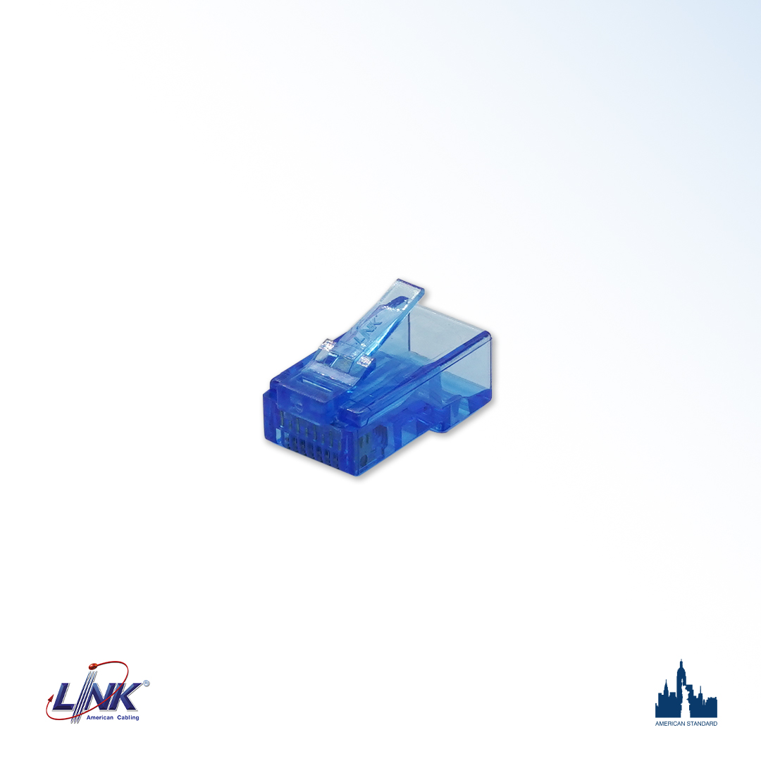 The LINK Category 6 NEW RJ45 Modular Plug 2 Layer complies with ISO/IEC 11801 Class E and ANSI/TIA-568.2-E standards for Category 6 performance. LINK offers these plugs in standard configurations, making them suitable for terminating modular cords in patching or workplace applications. The unique termination process simplifies installation, and the single-part design enhances performance.